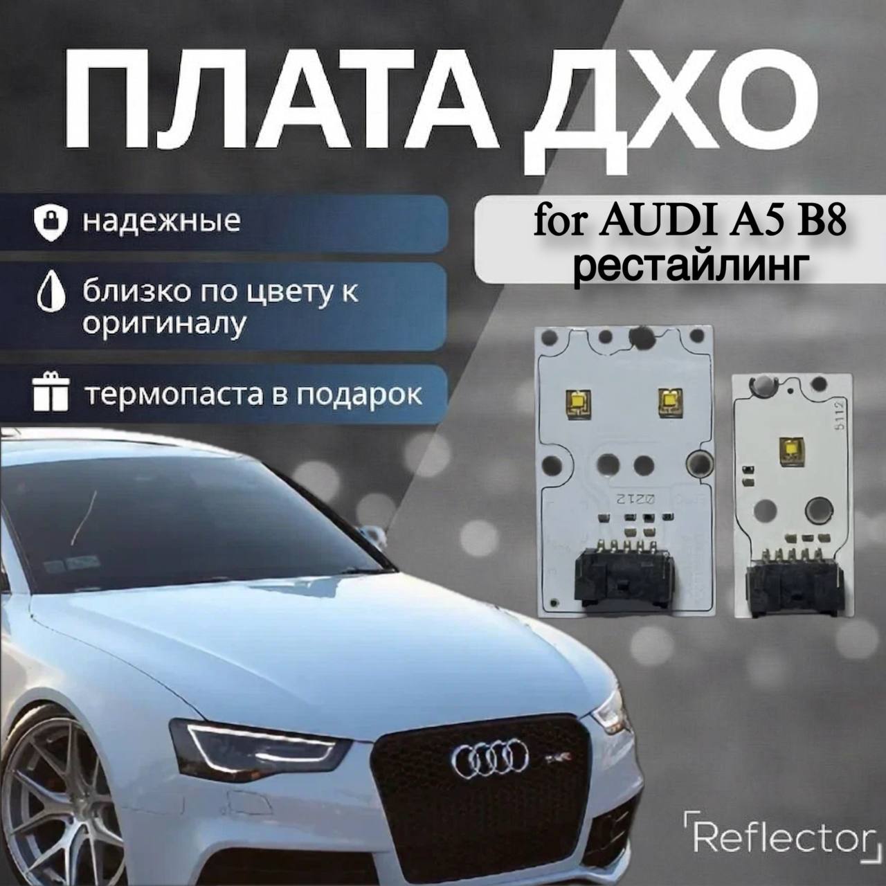 Преимущества светодиодных плат с драйвером ДХО- Полное соответствие оригинальным платам – идеально подходят для замены без необходимости доработок в фары AUDI A5 8T рест 2011-2016