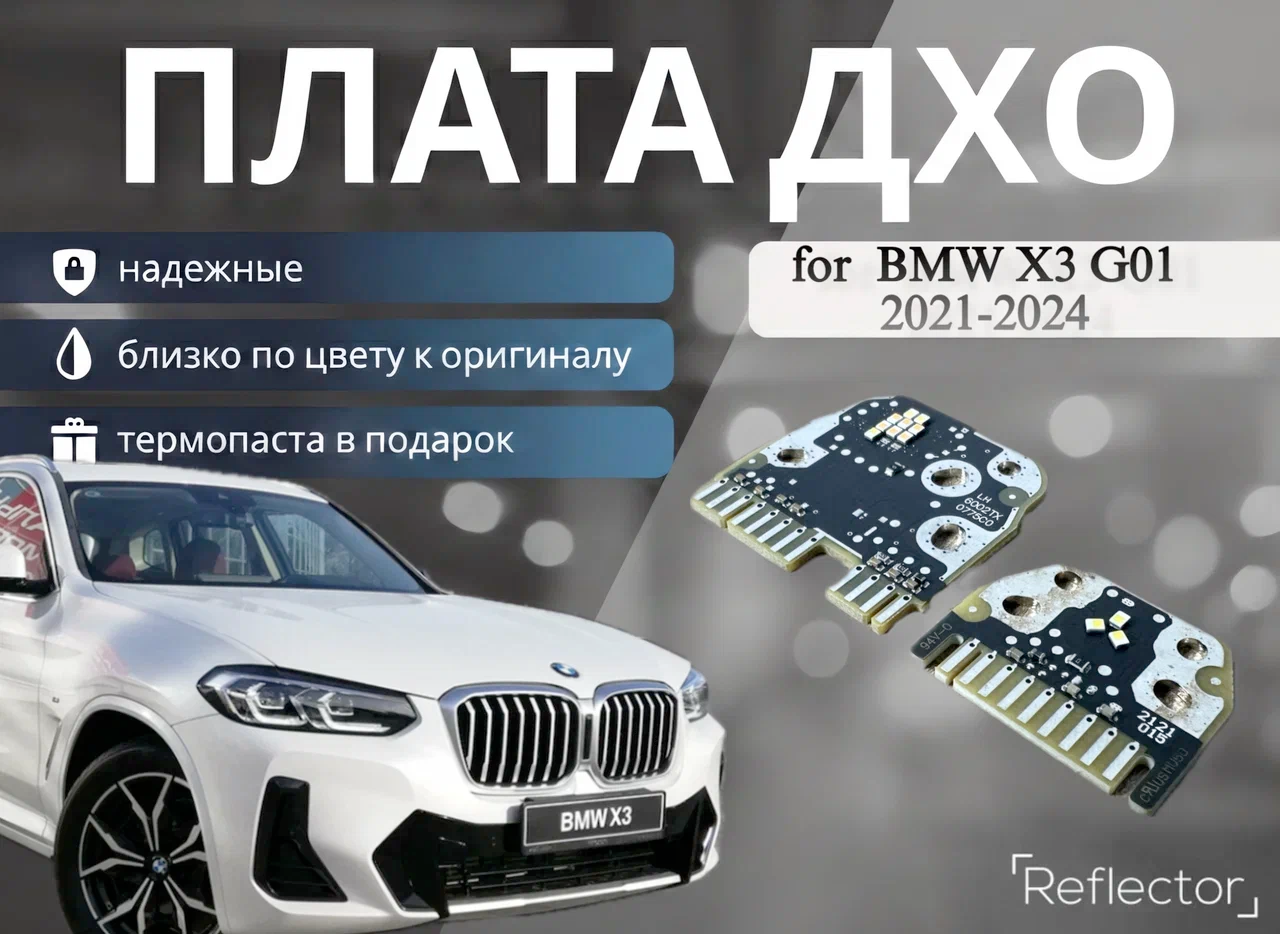 Преимущества светодиодных плат с драйвером ДХО- Полное соответствие оригинальным платам – идеально подходят для замены без необходимости доработок в фары BMW X3 G01 рест 2021-2024 (EU) 6002TZ0384