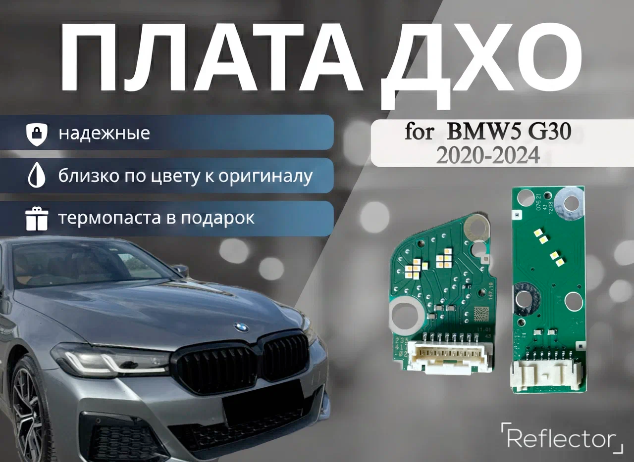 Преимущества светодиодных плат с драйвером ДХО- Полное соответствие оригинальным платам – идеально подходят для замены без необходимости доработок в фары BMW 5 G30 рест 2020-2024