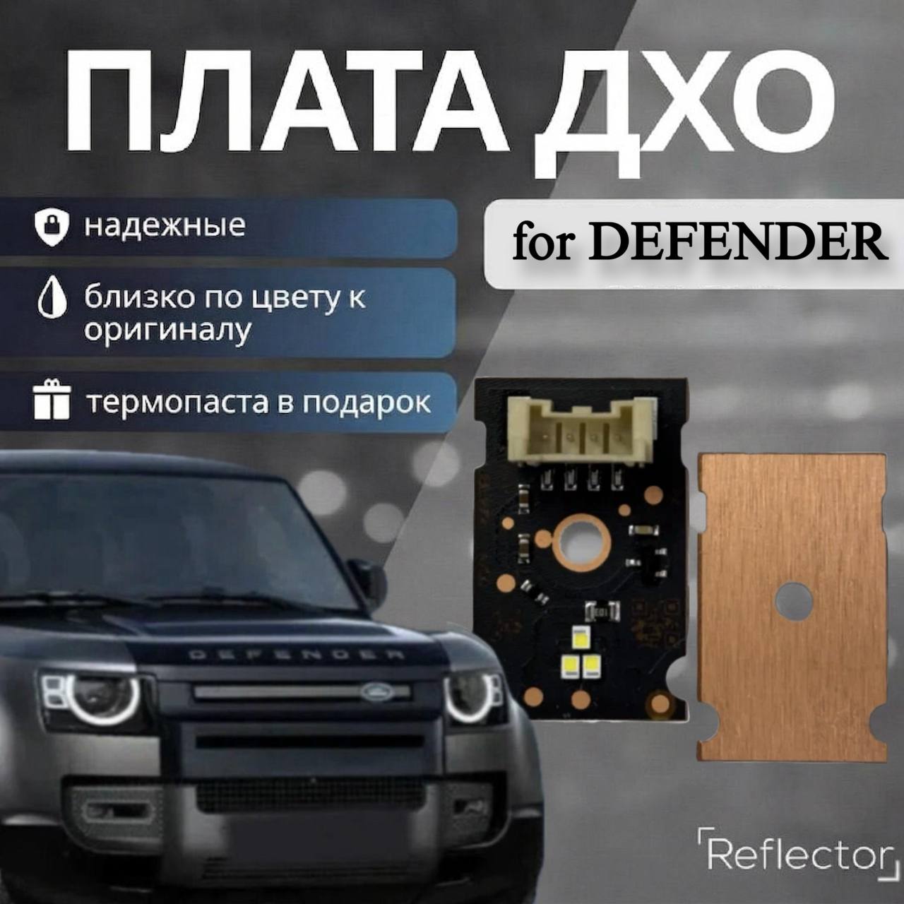 Преимущества светодиодных плат с драйвером ДХО- Полное соответствие оригинальным платам – идеально подходят для замены без необходимости доработок в фары Land Rover Defender 2019-2024