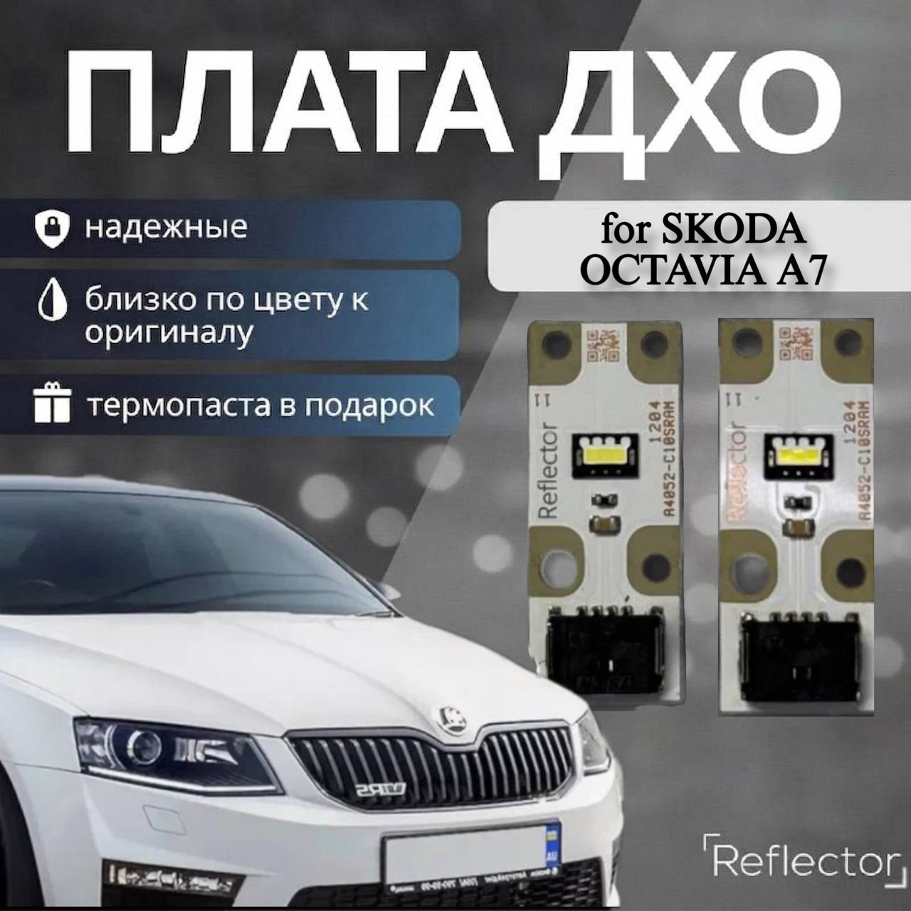 Преимущества светодиодных плат с драйвером ДХО- Полное соответствие оригинальным платам – идеально подходят для замены без необходимости доработок в фары Плата ДХО Skoda Octavia A7 2013-2017