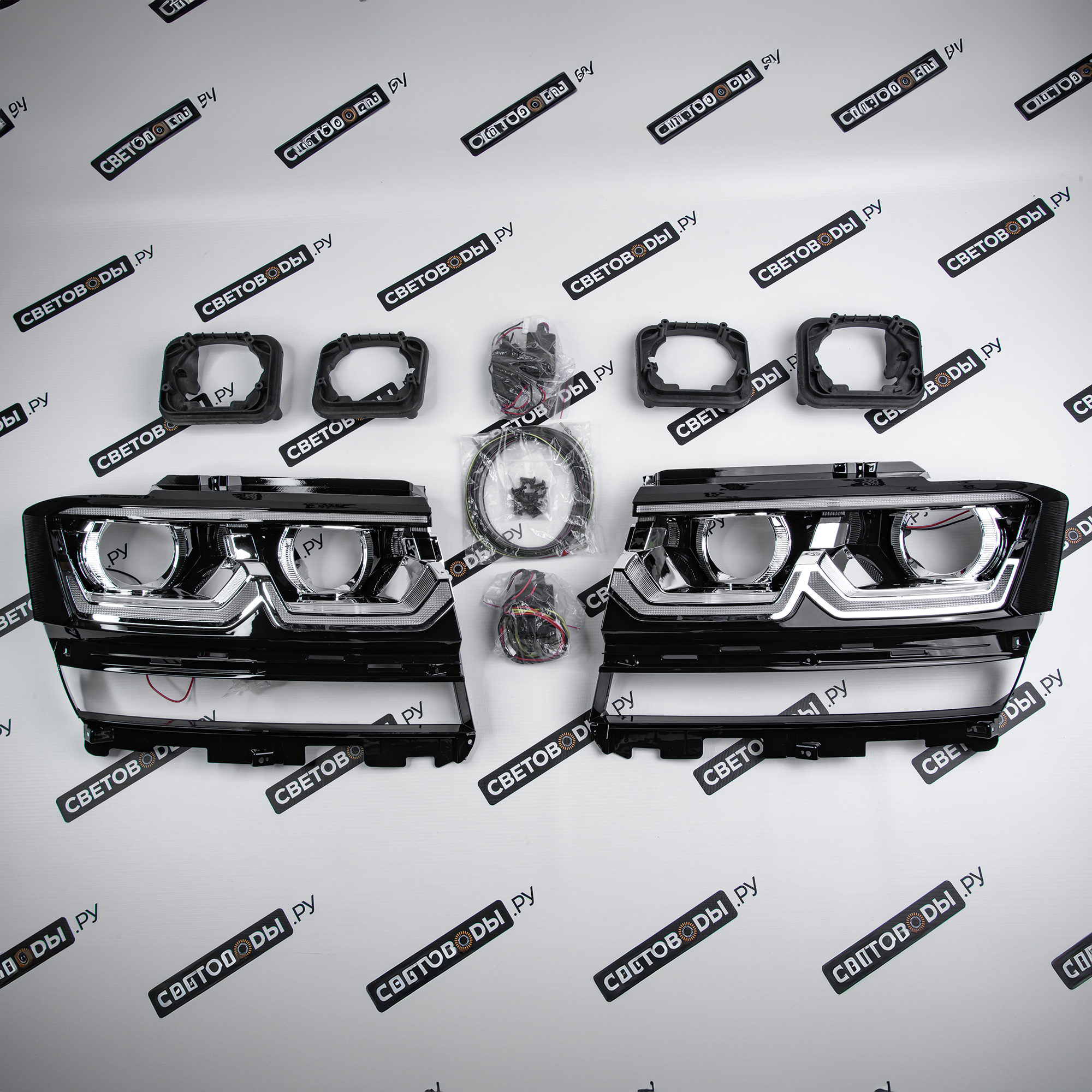 Комплект для установки линз включает все необходимые компоненты: крепежи, переходные рамки и, в некоторых случаях, блоки розжига, линзы, проводку. Такой комплект не только упрощает процесс модернизации фар, но и позволяет улучшить комплектацию и придать автомобилю Volkswagen Teramont 1gen 2017-2021 более стильный и современный вид.