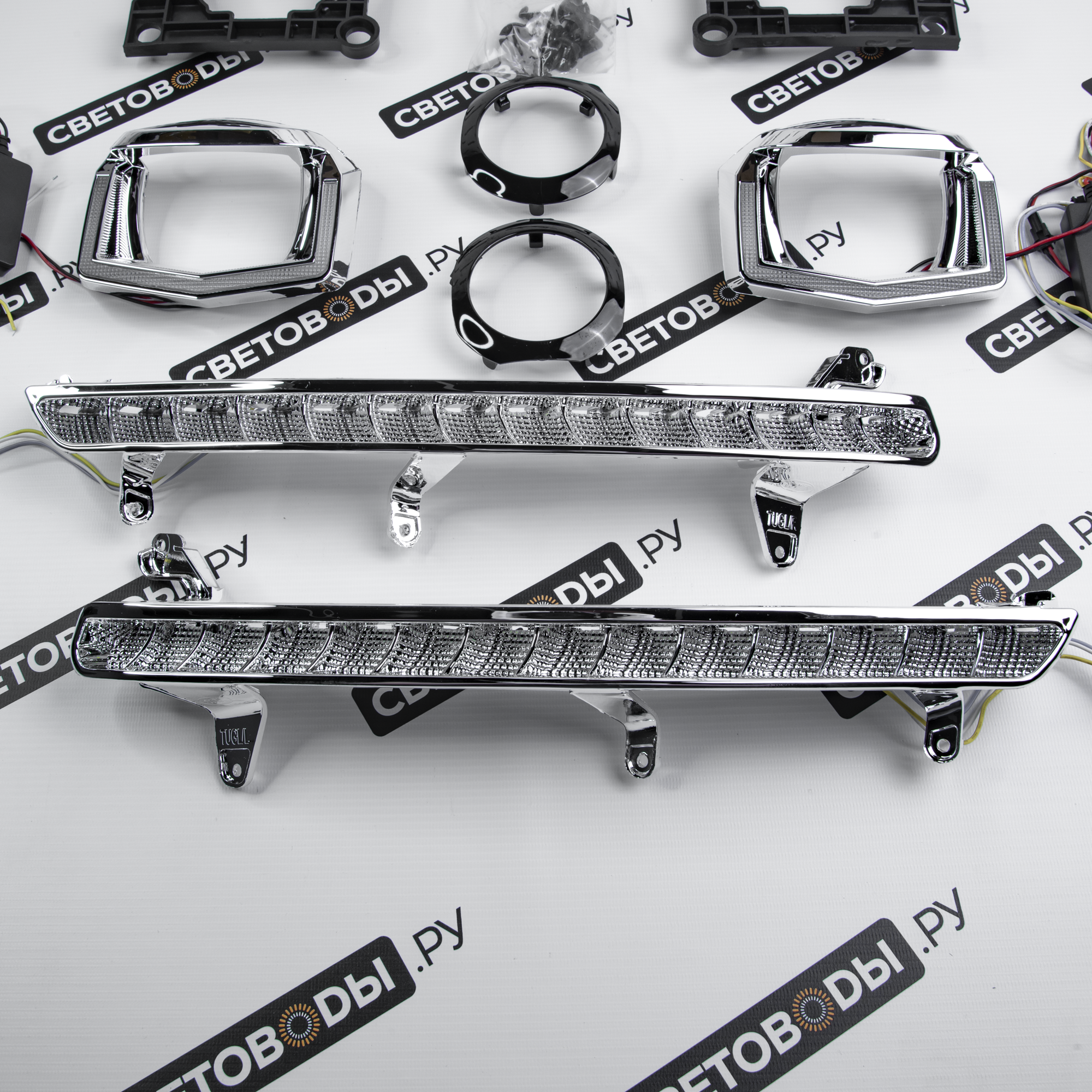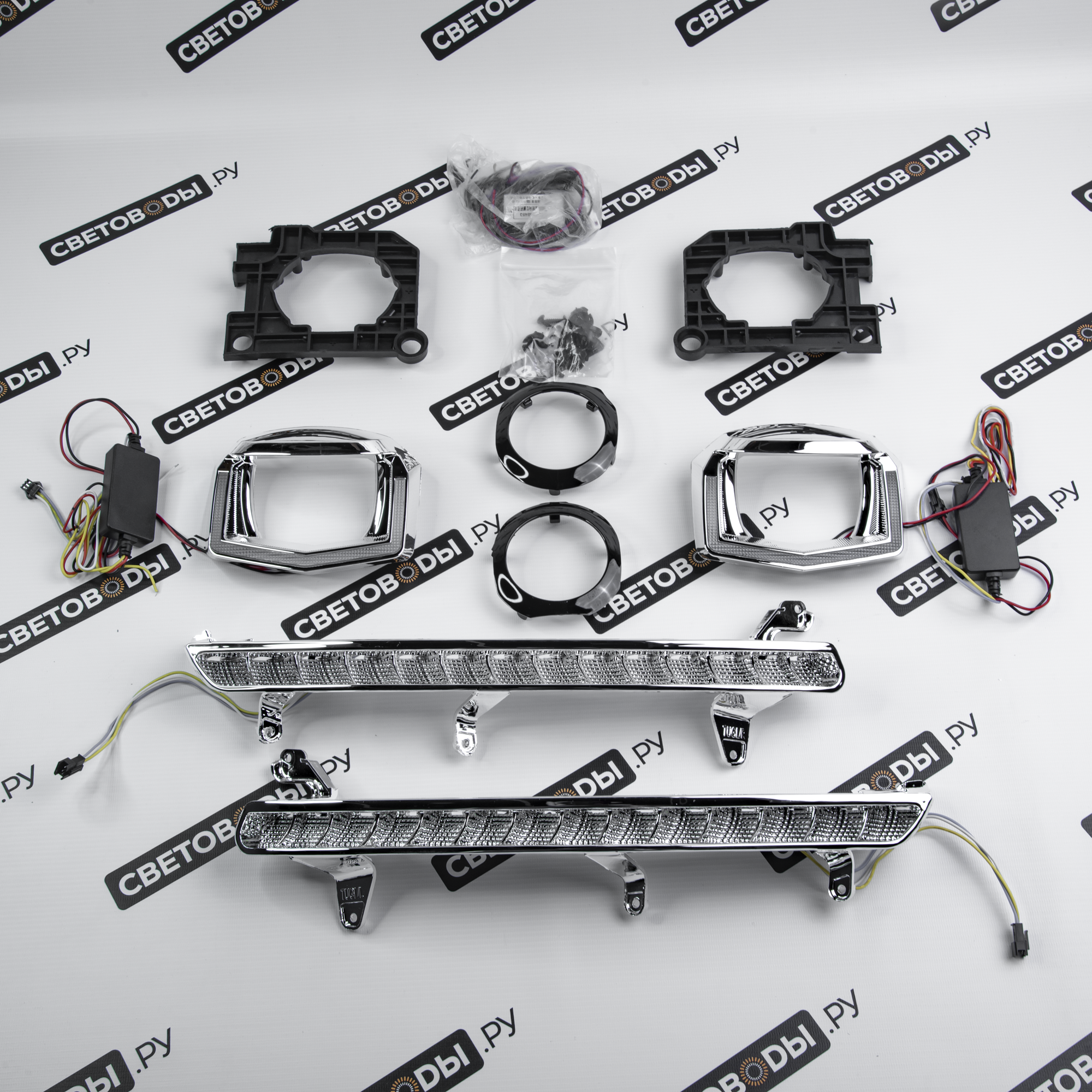 Комплект для установки линз включает все необходимые компоненты: крепежи, переходные рамки и, в некоторых случаях, блоки розжига, линзы, проводку. Такой комплект не только упрощает процесс модернизации фар, но и позволяет улучшить комплектацию и придать автомобилю Volkswagen Tiguan 2gen 2016-2021 более стильный и современный вид.